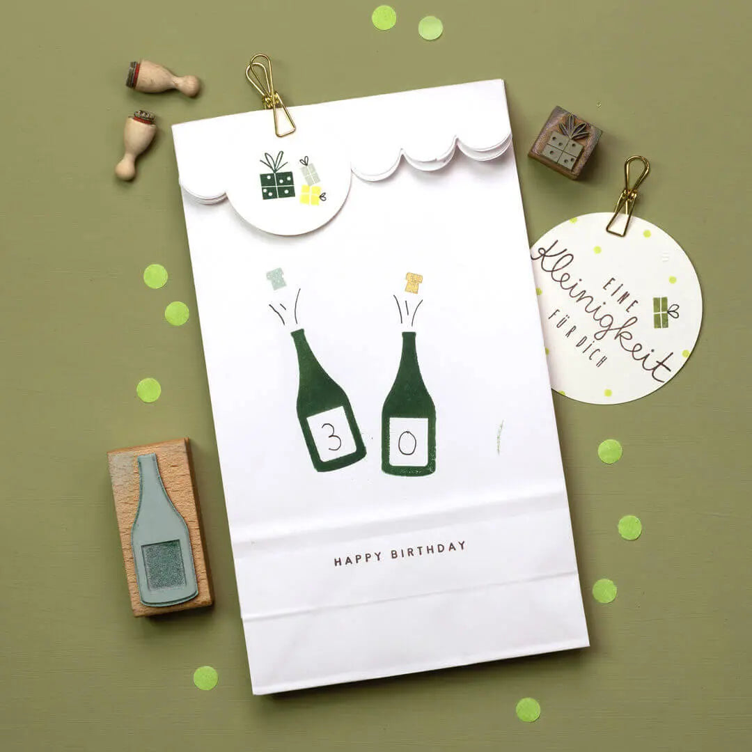 Unter Schachteln & Tüten findet ihr süße Verpackungen, die ihr wunderhübsch bestempeln könnt und zum Schluss ganz einfach mit einem Clip schließt. So kommen eure Geschenke perfekt zur Geltung. Lasst euch gerne in unserer Kategorie Stempel Geburtstag inspirieren!