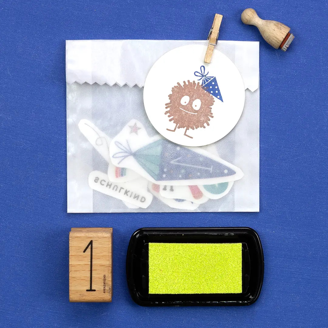 Zaubert den Kleinen zur Einschulung eine tolle Schultüte, die man mit allerlei Utensilien und Leckerbissen befüllen kann und ganz einfach mit einem Clip schließt, den die Kids im Nachhinein sicherlich noch gut verwenden können.