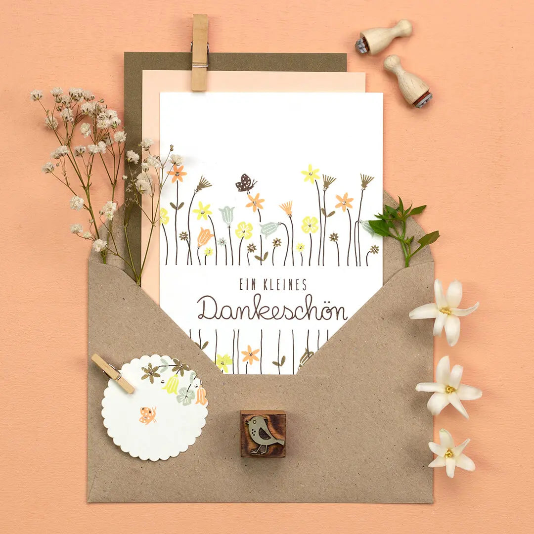 Entdecke unsere große Stempelauswahl und kombiniere "Basteln" und "Stempeln" für individuelle kunterbunte Karten: