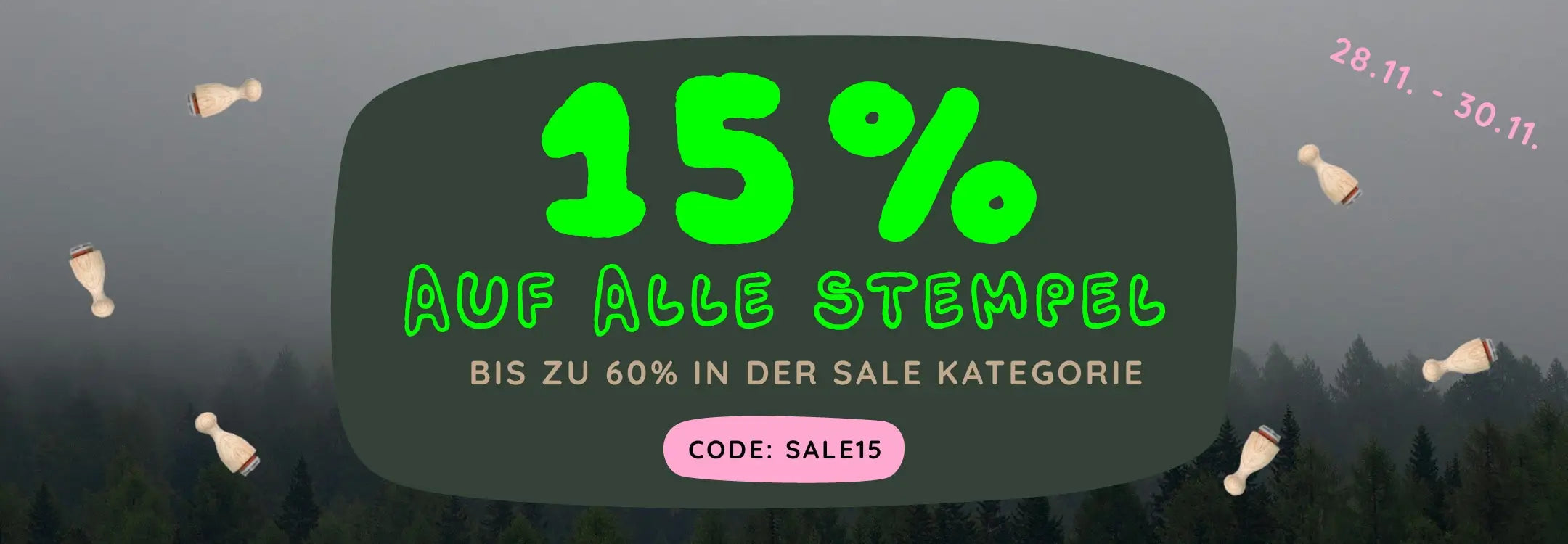Mit dem Rabattcode „SALE15“ erhältst du 15% auf alle Stempel vom 28.11 bis 30.11.