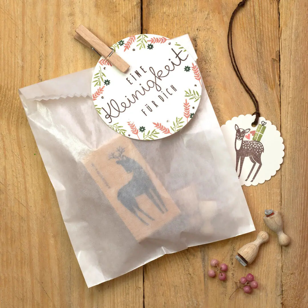 Nicht nur Papeterie lässt sich gut bestempeln, auch Stoffe, wie Leinen oder Baumwolle, sind wunderbar dafür geeignet. Verwendet gerne unsere bunten Stempelkissen, wenn ihr die Stoffe nicht waschen müsst und ihr sie nur zu Dekozwecken oder für Geschenke nutzen möchtet. Die Stoffstempelfarbe hingegen ist wasserfest, sodass ihr auch Servietten, Tischdecken und Co. verzieren könnt. Manchmal reicht es aber auch aus, wenn ihr einfach einen bestempelten Papieranhänger an den Stoffbeutel hängt. So ist euer Geschenk garantiert wunderschön eingepackt.