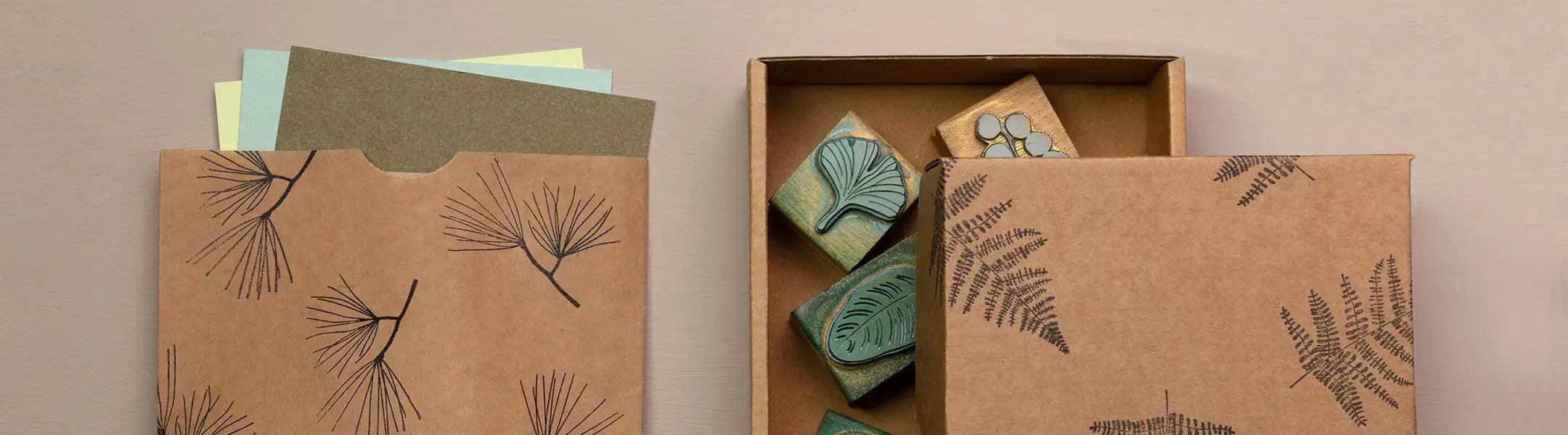 Bestempelt die Pappe und den Papieranhänger nach euren Vorstellungen, bindet das Tag mit Garn um die Schachtel und packt euer Geschenk rein. Fertig ist euer individuelles Präsent!