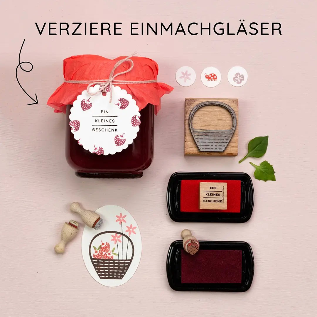 Selbstgemachte Marmelade verdient eine liebevolle Verpackung. Mit unseren Erdbeer-Stempeln, Papieranhängern und Banderolen machst du jedes Glas zu einem kleinen persönlichen Kunstwerk.