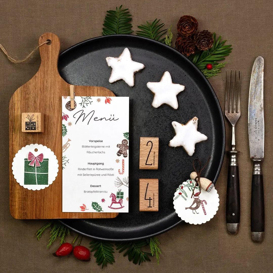 Gestalte deinen Tisch mit Liebe zum Detail – ob festlich an Weihnachten, verspielt zu Ostern oder elegant zur Hochzeit. Mit bestempelten Servietten, Menükarten, selbstgemachte Serviettenringen oder DIY-Anhängern wird jede Tafel zu einem echten Highlight. Passend dazu findest du bei uns viele kostenlose Druckvorlagen!