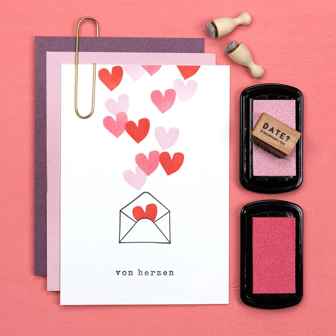 Wir stempeln unsere Schriftstempel am Liebsten in dunklen und kräftigen Farbtönen, da dadurch die feinen Linien besser sichtbar werden und die süßen Sprüche so besonders schön zur Geltung kommen!