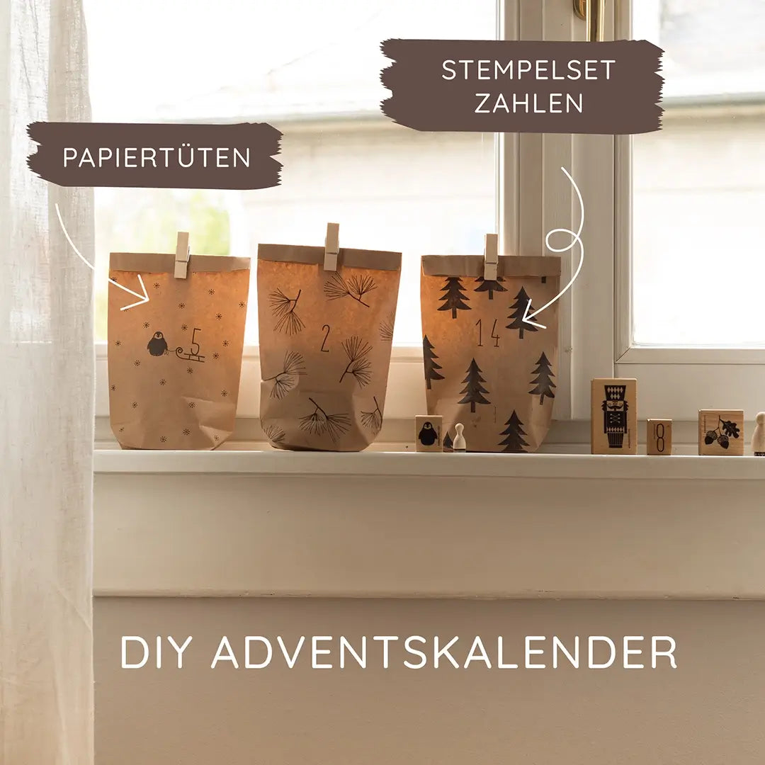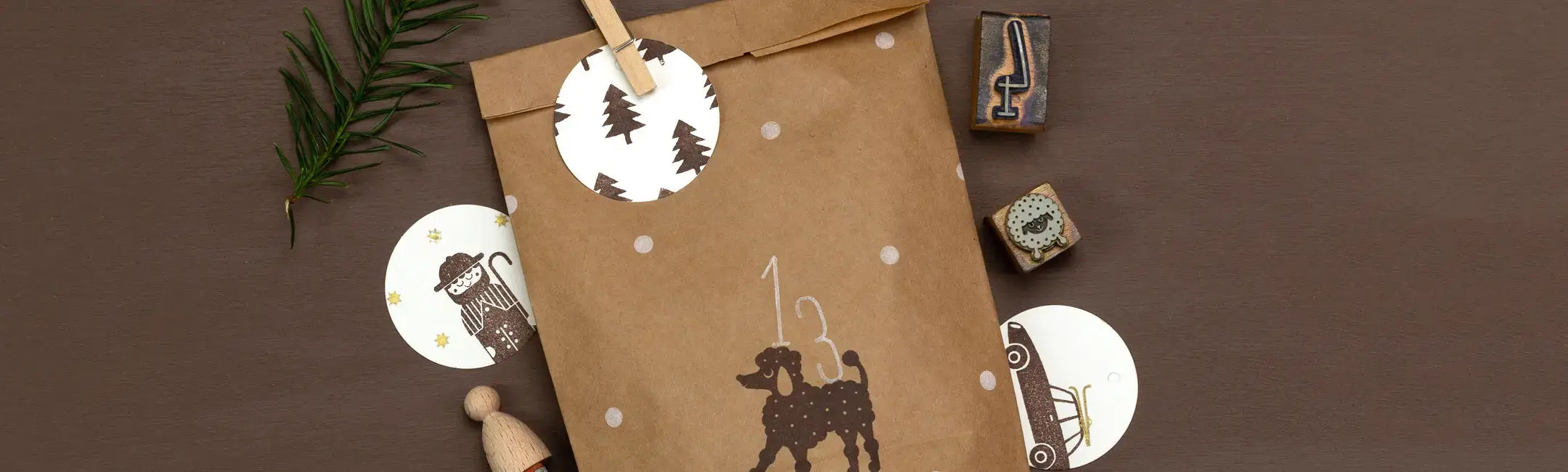 Advent calendar DIY for Christmas? Simply stamp the paper bags, fabric bags and tags yourself to make your calendar unique and bring great joy.