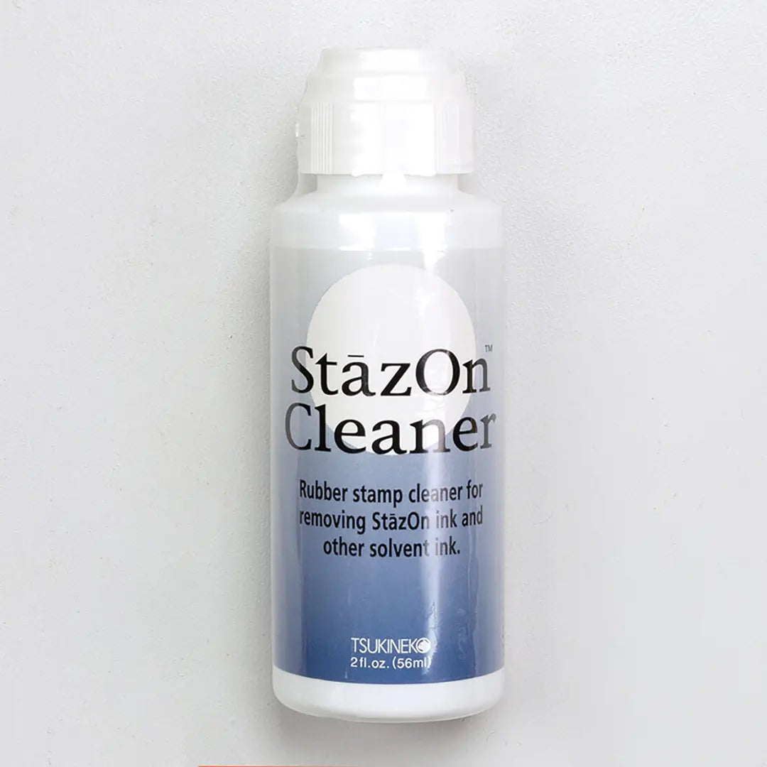 Der StazOn Reiniger hat ein integriertes Kissen am Flaschenkopf, mit dem du die Farbe direkt vom Stempel abtragen kannst. Reibe den Stempel mit dem Kissen ein und tupfe ihn anschließend auf einem feuchten Schwammtuch ab, um überschüssige Reste zu entfernen.