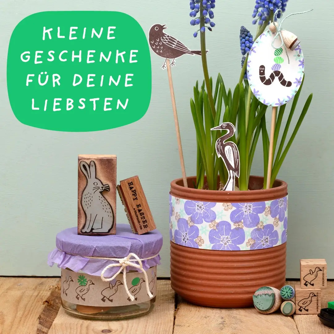 Try decorating a flower pot with self-stamped spring motifs. This DIY is also perfect as a creative gift for the Easter Monday afternoons.