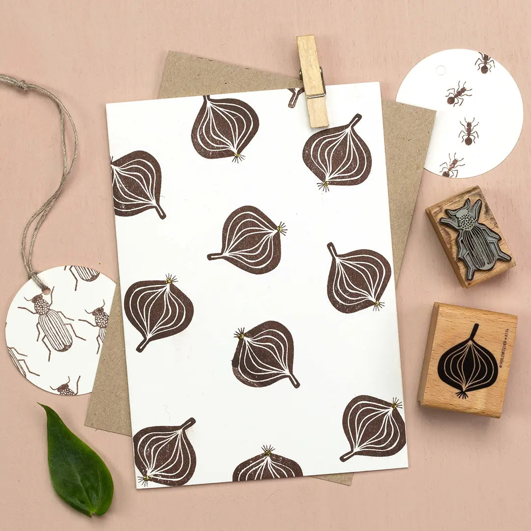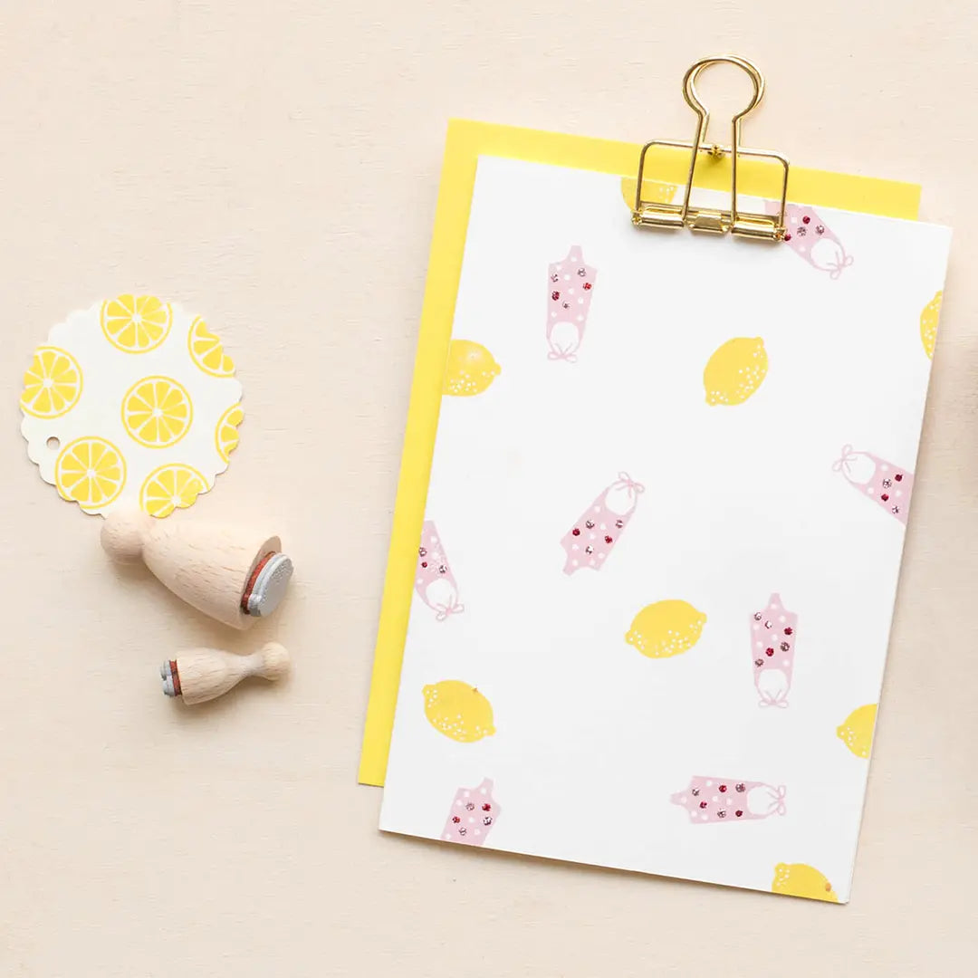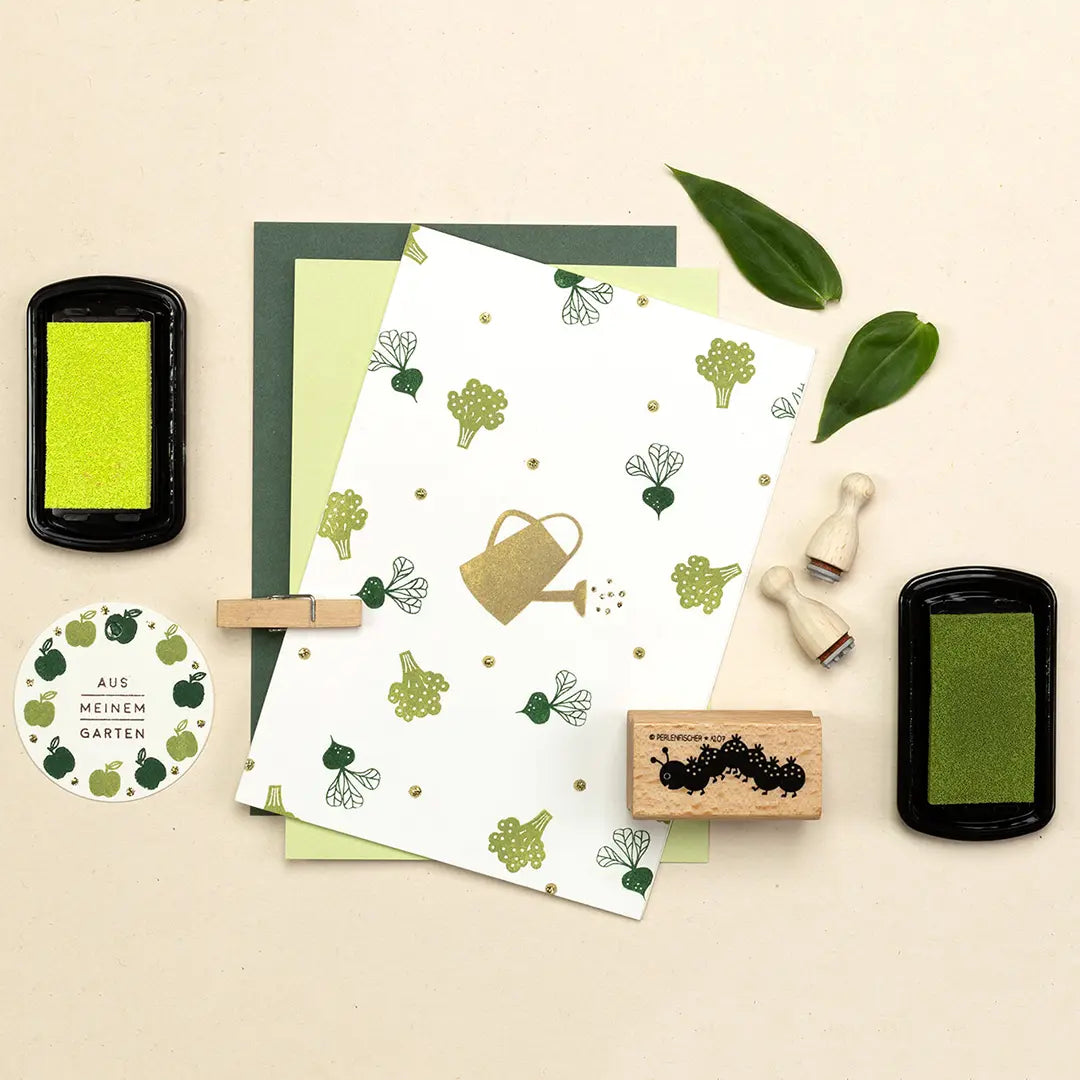 Stamp unique dinner invitations, individual table decorations and greeting cards or gift tags with sweet fruit and vegetable motifs.