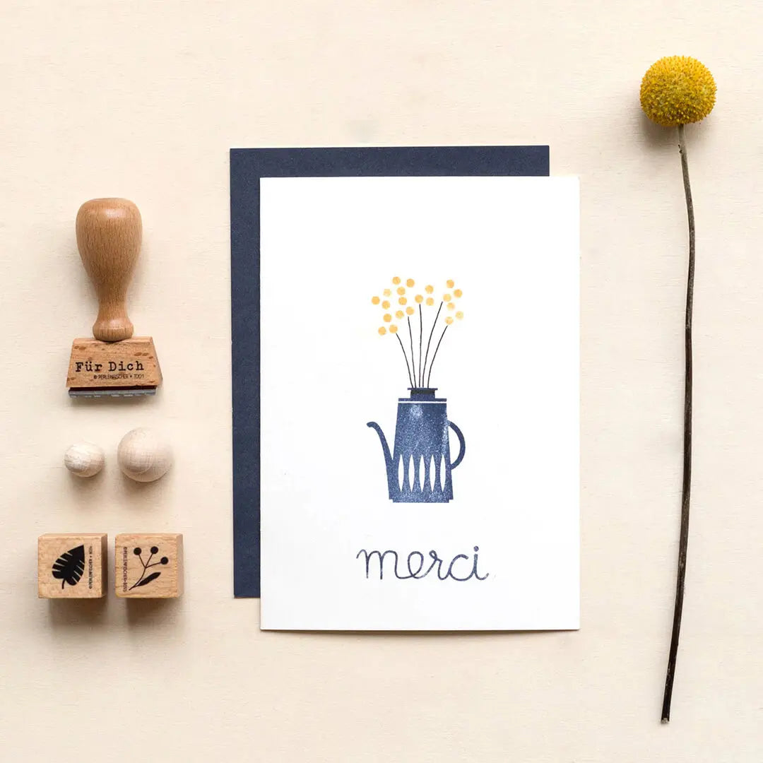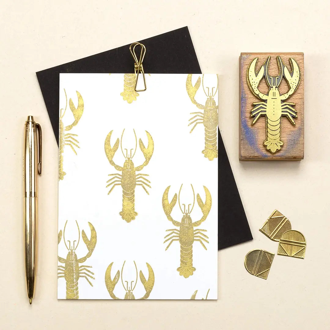 This noble lobster card is an absolute eye-catcher! Simply stamp with our Ink pad | Gold the Stamp | Lobster on a card. The contrast and the glitter effect are even stronger when you stamp on dark stationery.