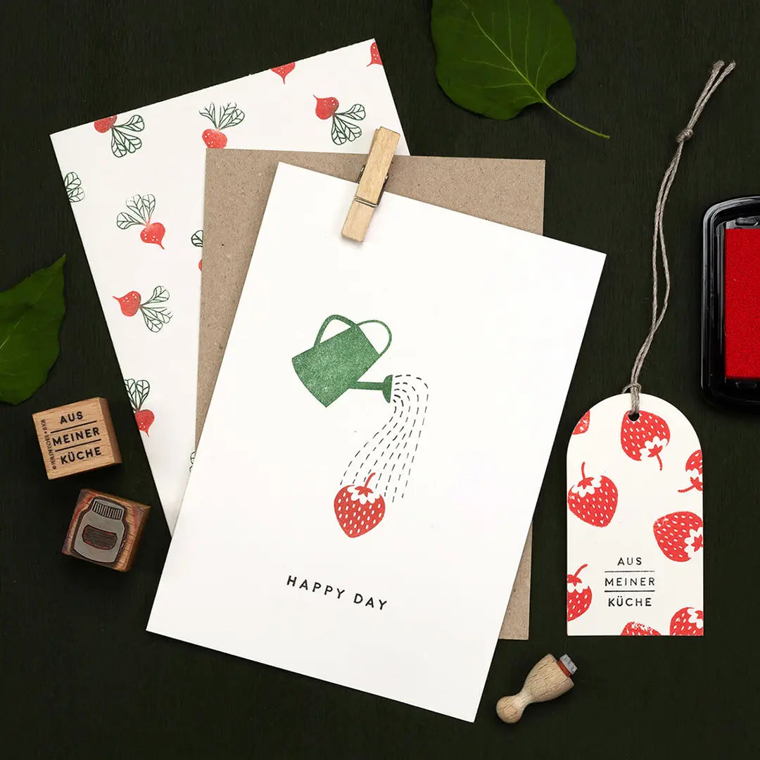 Stamp your own summer bag to individually wrap picked cherries. Feel free to use our Stamp | Cherry mini. The 24 paper bags | brown are perfect for stamping and wrapping fruit from your garden.