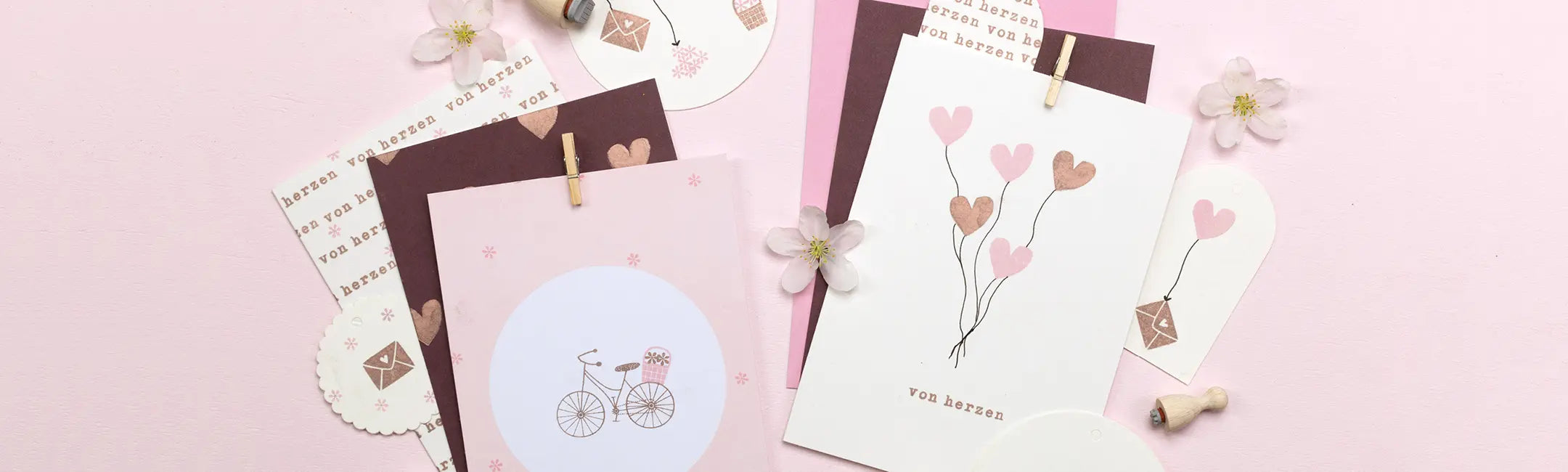 For Mother's Day, red and pink tones can be used to wonderful effect, as they go perfectly with all kinds of hearts. We stamp flowers in a wide variety of colors so that they really come into their own. Discover new color combinations and our huge selection of almost 30 highly pigmented and refillable ink pads.
