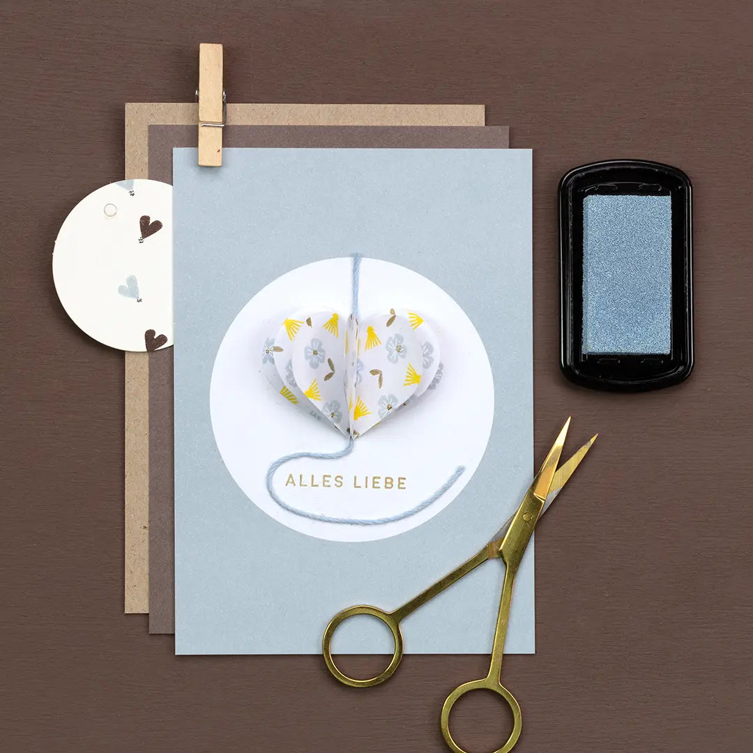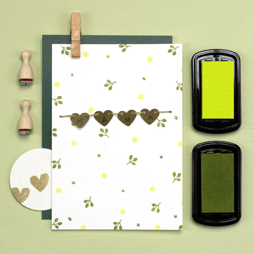Yarns can beautifully enhance your self-stamped greeting card. Tie bows, attach gift tags or make small garlands. There are no limits to your creativity.
