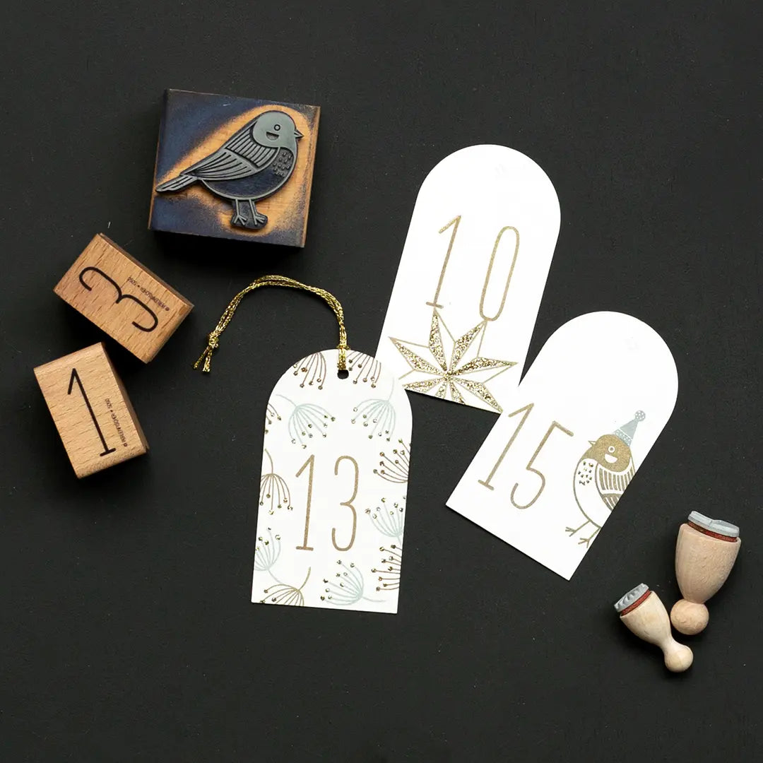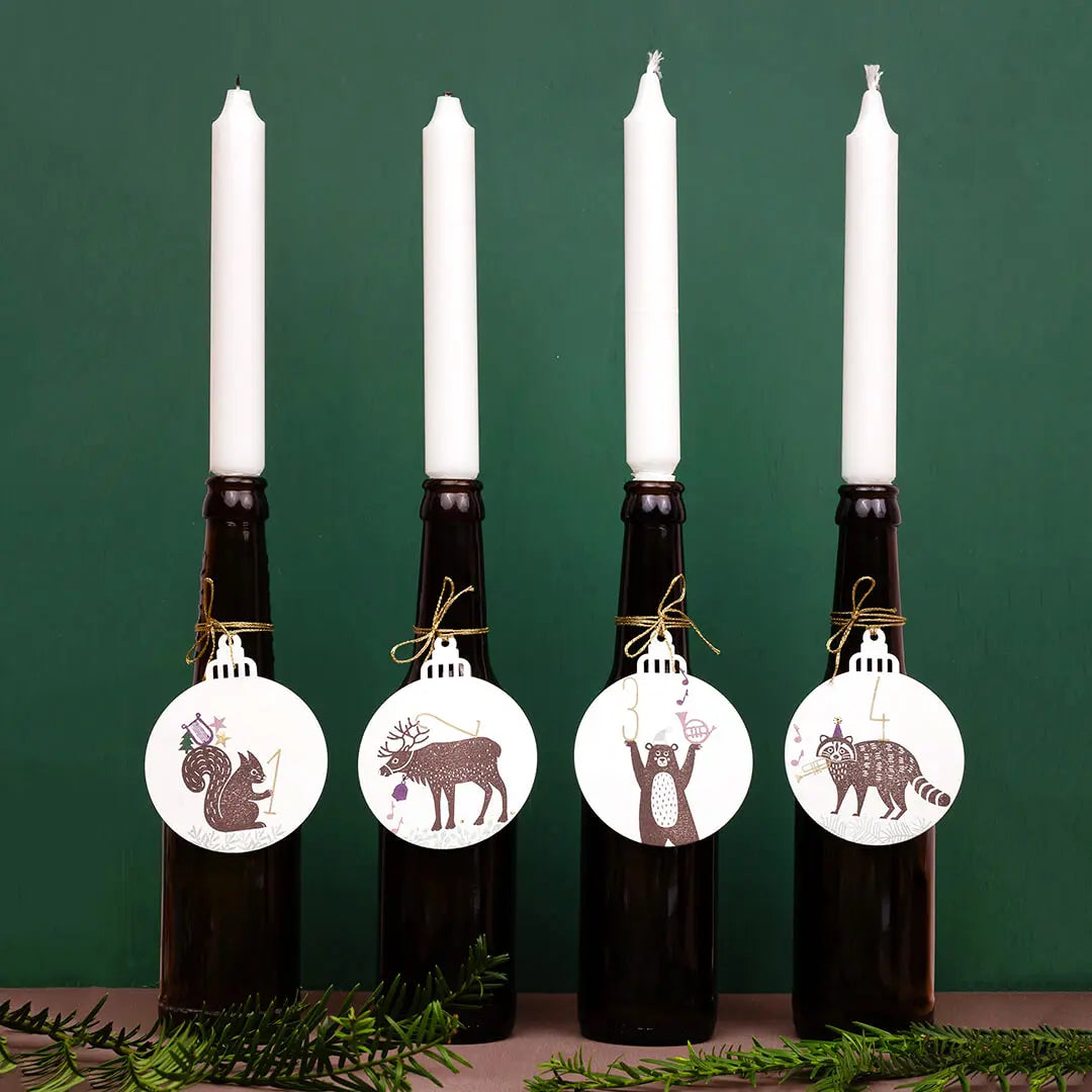 We love trying out new DIY's and giving new life to all sorts of items. Simply reuse bottles by removing the label, stamping beautiful Papertags with our Stamp set | Numbers and tying them to the bottle with twine. Finally, just put the candles inside. Ready is your homemade Advent wreath!