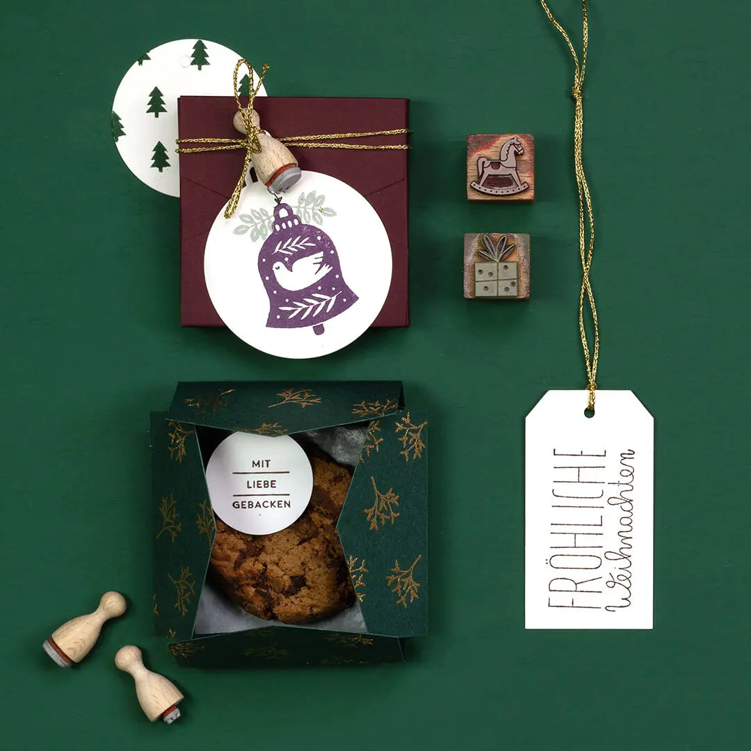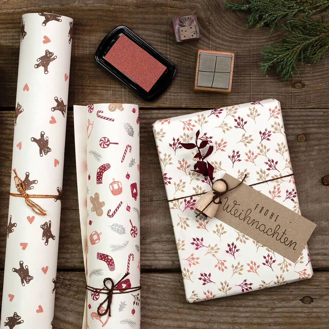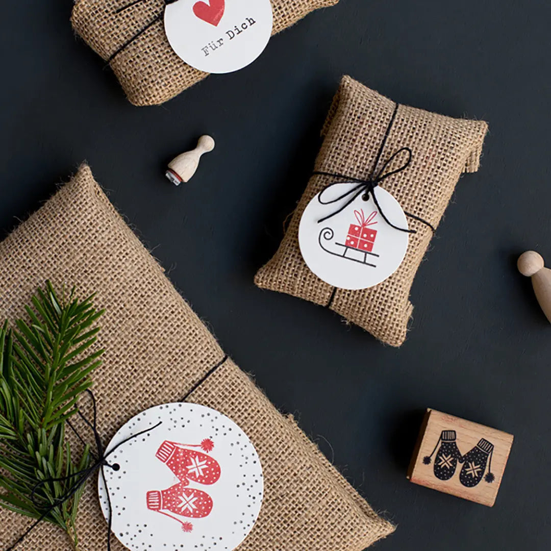 Yarn is simply the perfect stamping accessory. You can put your self-stamped works perfectly in scene. Use them to wrap gifts for all sorts of occasions, for unique decorations in your home, festive Advent calendars, individual cards and gift tags.