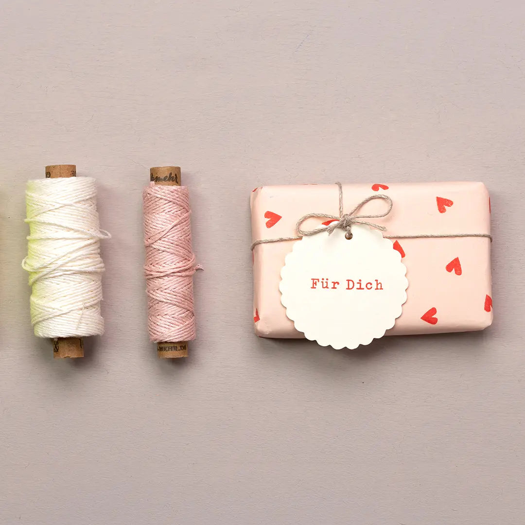 Colorful yarns made from cotton or linen: Use them to tie your homemade tags to gifts or decorate cards creatively and individually.