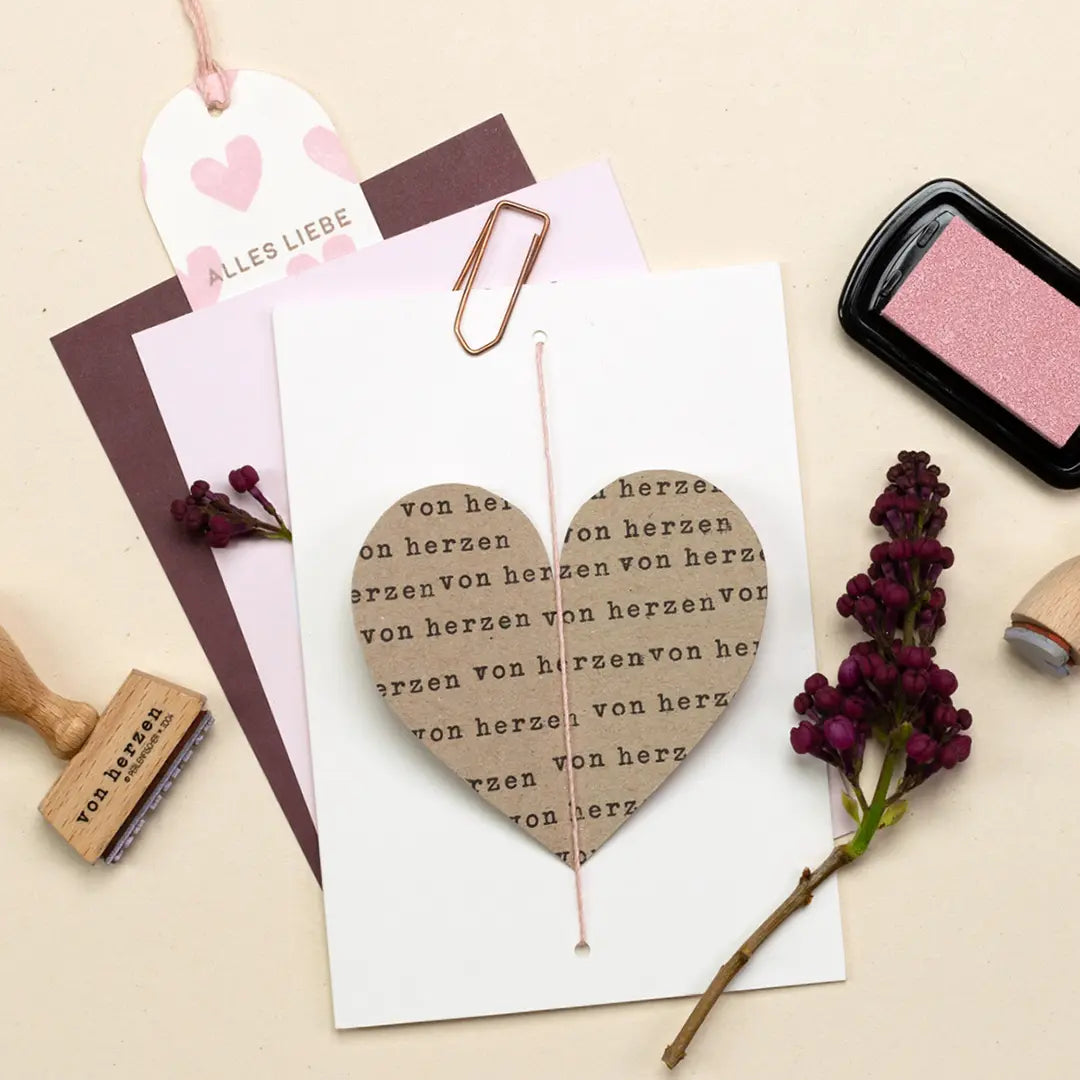 Design your own wedding invitations or greeting cards for the celebration of love. Tie your letters together with yarn, stamp great tags and hang them as decoration on your table flowers. You can find many more DIY ideas under: