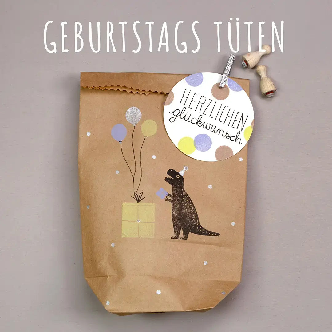 Die Tüten lassen sich wunderbar mit unseren Pigmentstempelkissen bestempeln.